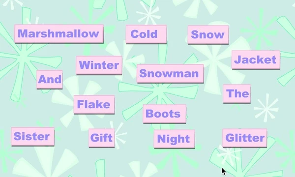 You'll see a bunch of winter-themed words on one side of your screen. By using the arrows below them, you can explore more words. When you find a word that fits perfectly into your poem, you can move it to a special board where your poem comes to life!