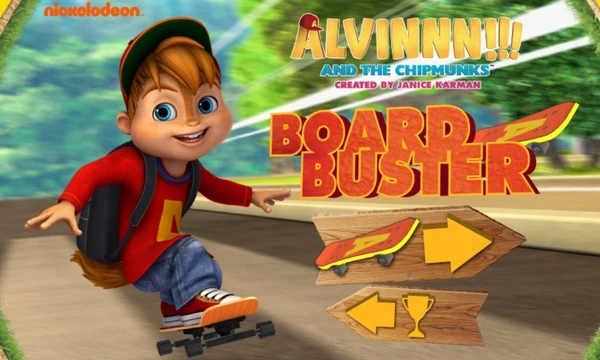 Start skateboarding with Alvin in the Board Buster game! Can you overcome all the obstacles, perform tricks, and collect the chipmunk's favorite items?
