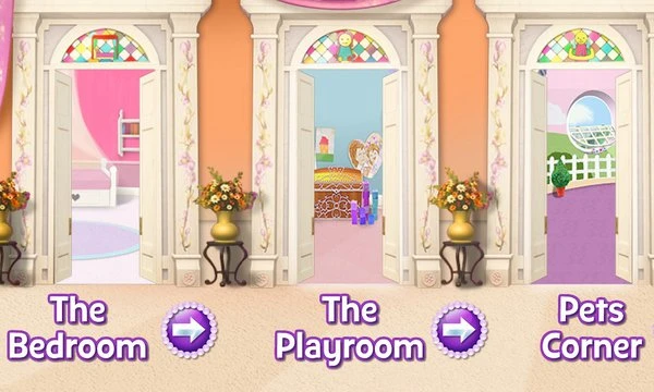 As you arrive in the wing your princess will be living, you will have to choose what room do you want to decorate first. Will you start with your bedroom, or you will go on and set an elegant, neat corner for your animal friends?