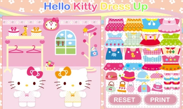 Join Hello Kitty and Mimmy as they experiment with fashion in the Hello Kitty Dress Up game! Check out what they have in their closets and their bedroom!