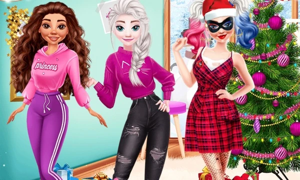 Join Harley Quinn's Christmas celebration in the How Villain Quinn Stole Christmas game! Dress Elsa, Moana, and Harley, and prepare them for the Holidays!