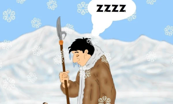 The purpose is to hit the Eskimo in the head so he can open up his eyes. Once you start passing through the levels, you will see that you have to make use of other objects to wake him up. Big snowballs, animal skeletons, bones, and many others. They can all work and make you aim your purpose.