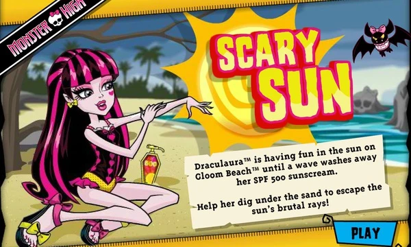 Help Draculaura avoid getting sunburnt in the Scary Sun game. Keep her safe by digging under the sand, collect the treasures, and watch out for the crabs!