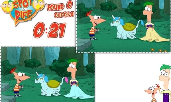 Play Spot the Diff game together with Phineas and Ferb! Test your attention skills and find all the differences in the pictures before the time runs out!