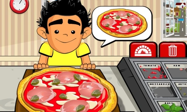 Your kitchen is stocked with delicious ingredients like tomato sauce, cheese, ham, mushrooms, basil, and pepperoni. At first, you'll make easy pizzas with just a few ingredients, such as Margherita or Marinara. But as you get better at the game, you get to use even more ingredients to make more advanced pizzas like Quattro Stagioni or Pepperoni.
