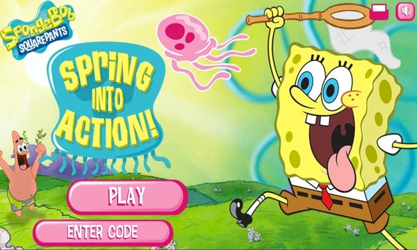 Help SpongeBob feed his hungry friend Patrick with jellyfish in the Spring Into Action game! Patrick is always hungry, but he is also lazy. Luckily, he has friends like SpongeBob who would help him in this situation! Today's treat is jellyfish, and since our sponge friend is the resident jelly catcher, he now must bring the starfish some snacks! Swing your net and help him!