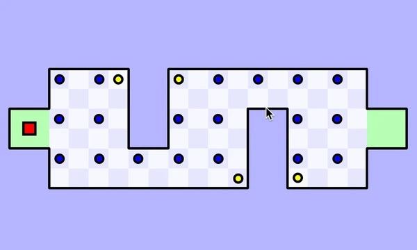 You'll be a little red square going on an amazing adventure! Your job is to get through lots of puzzles without touching any blue circles. Your mission in each level is to gather all the yellow circles and make it to the green spot without touching any blue circles! Can you do it?