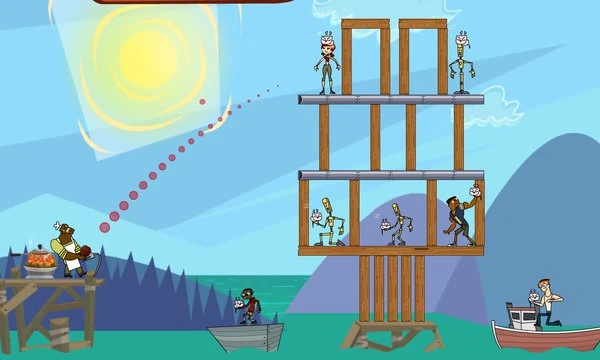 Play the Toxic Targets game to experience another challenge with the Total Drama Action Show contestants. They are scattered throughout various structures this time, holding mutant squirrels in their hands. However, Chef needs to take them all down, but he needs your help. Are you up for the task
